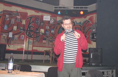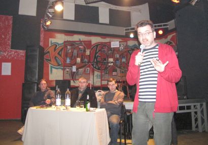 Treći gost večeri bio je mlađahni Franjo Janeš (rođen 26.8.1982.), zaposlen kao znanstveni novak-asistent na Katedri za jezik Odsjeka za germanistiku Filozofskog fakulteta u Zagrebu. Upravo mu izlazi knjiga “Noć mrtvih živaca”, mračan, ali duhovit prvijenac čije igranje s jezikom pleše na granici seksualnog uznemiravanja.