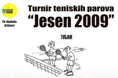 Teniski klub “Radnik” Križevci u subotu 3. listopada organizira turnir parova “Jesen 2009” s početkom u 9 sati, no u slučaju većeg broja prijavljenih igrat će se i dan ranije, od 16 sati. Prijave se zaprimaju do sljedećeg četvrtka, 1. listopada do 18 sati, na broj telefona 091/522 3484 ili osobno na terenima TK “Radnik, kad će biti objavljen i raspored igranja. Kotizacija za članove kluba iznosi 80 kn, dok član i nečlan plaćaju 100 kn te 120 kn ostali. Sve eventualne izmjene i pomaci u satnici mogu se pratiti na web-sjedištu kluba. Kako neslužbeno doznajemo, klub planira proširenje svojih kapaciteta izgradnjom novih terena, koji će se nalaziti u neposrednoj blizini starih, u Tomislavovoj 166.