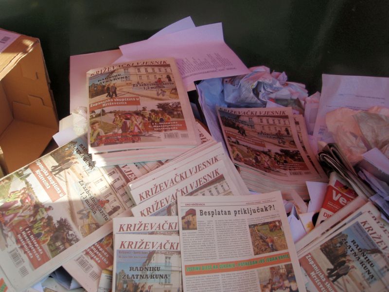 Koliko god primjeraka Križevačkog vjesnika otkupljivali financijeri, primjećujemo da se već petnaestak dana nakon izlaska iz tiska neprodani dio mjesečne naklade, tzv. remitenda, odlaže u kontejner u dvorištu A. G. Matoša 3, što je adresa redakcije Radio Križevaca! Tako se dogodilo i u petak 16. listopada, kad smo fotografirali odlaganje broja 11, godina II od 30. rujna 2009., u smeće. Postavlja se pitanje je li to doista jedina logična sudbina lokalnih novina financiranih iz gradskog i općinskih proračuna, čija se remitenda procjenjuje na 40-50% naklade, iako podatak o samoj nakladi nije javno obznanjen.