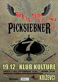 Rock se u Križevcima posljednjih mjeseci i dalje uzdiže, barem ako je suditi po kontinuitetu programa “Rock is Rising” koji jednom mjesečno održava održava u križevačkom Klubu kulture u organizaciji moto-kluba Crusaders. Treće izdanje koncertnog rocka u Križevce dovodi zagrebački hard-rock&country sastav Picksiebner, koji promovira novoizašli album “Trkaća svinja”, među kojima su i hitovi Bolje grob nego job te Stolica za ljuljanje, na kojima su im gostovali redom Mile Kekin i Goran Bare.