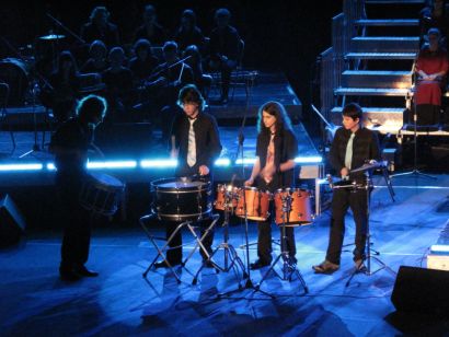 Koncert su osnovnim paradnim kadencama otvorila trojica udaraljkaša – Jasmin Abou Aldan, Domagoj Binder i Martin Gelić, zajednički s Josipom Konficom, njihovim nastavnikom na odjelu udaraljki, a nešto kasnije su publiku oduševili udaraljkaškom izvedbom bez instrumenata, gdje im se pridružio i najmlađi član Martin Borić.