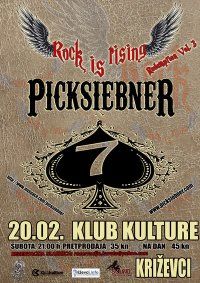 Rock se u Križevcima posljednjih mjeseci i dalje uzdiže, barem ako je suditi po kontinuitetu programa “Rock is Rising” koji jednom mjesečno održava održava u križevačkom Klubu kulture u organizaciji moto-kluba Crusaders. Peto izdanje koncertnog rocka, nakon trećeg izdanja koji je ostao neodržan zbog snježne mećave, u Križevce dovodi zagrebački hard-rock&country sastav Picksiebner, koji promovira novoizašli album “Trkaća svinja”, među kojima su i hitovi Bolje grob nego job te Stolica za ljuljanje, na kojima su im gostovali redom Mile Kekin i Goran Bare.