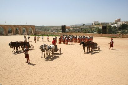 Idući dan krećemo prema sirijskoj granici preko Jerasha i Bosre. Jerash, poznat kao “Pompeji Istoka”, nalazi se oko 30 min vožnje sjeverno od Ammana. Danas je to najljepši sačuvani grčko-rimski grad nastao izvan Italije. Prošetali smo popločenom ulicom dugačkom preko 1.5 km sa stupovima, pogledali dobro očuvano kazalište, terme, hram Artemisa i Zeusa, rimski forum, Hadrianova triumfalna vrata. Zanimljive su i autentične utrke dvokolica, kao u rimsko doba. Uz gromoglasnu glazbu filma Gladijator, nekoliko lokalaca natjecalo se ne štedeći svoja četiri konja i sve je izgledalo kao i prije dva tisućljeća. Legionari u autentičnim odorama održavali su red, pogotovo pri borbi gladijatora. Nakon priredbe, moglo se slikati s pobjednicima, naravno za poneki dinar ili dolar.