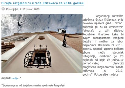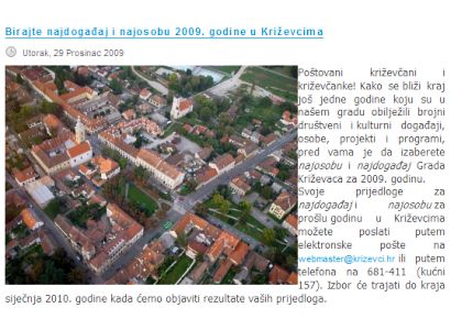 Krajem prosinca prošle godine na službenim web-stranicama Grada Križevaca objavljeni su pozivi građanima na izbor najosobe i najdogađaja 2009. u Križevcima te izbor najrazglednice grada za 2010. godinu. Iako su se prijave za osobu i događaj koji su obilježili proteklu godinu mogle zaprimati i e-poštom i telefonom, a rezultati su najavljeni za kraj siječnja ove godine, do danas ništa o tome nije objavljeno.