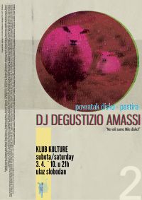 Večeras će se u Klubu kulture u Križevcima od 22 sata održati veliki plesnjak pod nazivom „Disco Shock: Povratak Disko-pastira“, posljednji događaj ovogodišnjeg, 6. izdanja Culture Shock Festivala, u glavnoj ulozi s križevačkim DJ-velikanom talijanskih korijena i građaninom svijeta – Degustizijem Amassijem! Mnogi su ga pokušali kopirati, a neki čak primjenjivali drastičnije metode kako bi ga onemogućili u onom što radi najbolje – propovijeda disco, no sve bez uspjeha! Amassi će ponovo, nakon dvije godine, uveličati festivalsku subotu za mase mladih i željnih neponovljivog i transcedentnog plesnog iskustva! Iz Kluba kulture najavljuju iste večeri i promotivni program jedne zagrebačke pivovare i glazbeno-promocijske kuće.