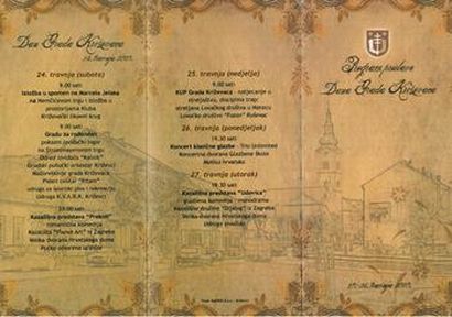 Na sutrašnji, slavljenički Dan grada na Nemčićevom trgu će se održati izložba u spomen na križevačkog slikara Marcela Jelaka, a u blizini će pokazni izviđački logor imati i Odred izviđača “Kalnik”. Navečer od 20 sati u Velikoj dvorani Hrvatskog doma održat će se kazališna predstava “Prekidi” Kazališta “Planet Art” iz Zagreba, a iste će daske ugostiti i glazbenu komediju “Udovica” Kazališne družine “Dijalog” iz Zagreba u utorak 27. travnja. U nedjelju Lovačko društvo “Fazan” iz Ruševca organizira KUP Grada Križevaca u streljaštvu, a u ponedjeljak uvečer bit će koncert klasične glazbe trija Unlimited.