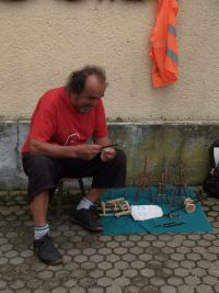 Ipak, ti su starinski štandovi manje ili više “atraktivni”, ali postojao je i jedan koji i nije bio štand, nego tek želja za prisustvovanjem, u svom minimalizmu i skromnosti, s tek rasprostrtom krpicom, pored drvenog tronožca, na kojoj je bilo izloženo nekoliko “proizvoda” u mini izvedbi.