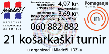 Sutra je na igralištu Gimnazije u Križevcima humanitarni košarkaški turnir, koji se igra u sklopu akcije “Pomaganje je uvijek IN “, a kojoj je cilj prikupljanje sredstava za Hrvatsku košarkašku reprezentaciju gluhih i za odlazak na Svjetsko prvenstvo gluhih u Palermo u Italiju. Iza organizacije ovog sportsko-humanitarnog događaja stoje Županijski odbor MHDZ-a Koprivničko-križevačke županije i Gradski odbor MHDZ-a grada Križevaca, koji pozivaju zainteresirane da se prijave za sudjelovanje na turniru do večeras u ponoć, na mail hdz.krizevci@gmail.com. Prijava treba, kako navode, sadržavati naziv ekipe i popis članova ekipe – ime i prezime. Također, napominju da je za prijavu ekipe potrebno 3 igrača, te da ograničenja u starosti nema, a ni kotizacije. Igrače se jedino moli da ponesu i dvije boje majica – bijele i crne. Oni koji ne stignu mailom, prijaviti se mogu i sutra, u subotu 28. kolovoza, na licu mjesta – od 9 do 9:30 sati, nakon čega će se obaviti ždrijeb. Turnir počinje u 10sati, a u slučaju lošega vremena s otvorenog bi se premjestio u dvoranu gimnazije. Mladi HDZ-ovci poručuju da se mladim gluhim košarkašima može pomoći i na broj 060/882-882. Cijena jednog poziva je 3,69 kn s fiksnog, odnosno 4,97 kn s mobilnog telefona.