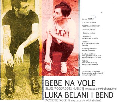 Sedmero rockera, šest godina udruge P.O.I.N.T., peti rođendan portala Križevci.info, četiri sata zabave, tri mrka medvjeda, dva moguća ishoda, samo jedan odgovor! U petak 3. rujna 2010. na rock-koncertu u križevačkom Klubu kulture sviraju Luka Belani & Band iz Križevaca, bluzer Bebe Na Vole iz Zagreba te gitarski muško-ženski duo iznenađenja. Ulaznica košta 15 kuna, a početak je zakazan za 21:30 sati. Pohodite osvježeni interijer Kluba kulture u večeri otvorenja nove radne sezone koja će prkositi recesiji u glavama i novčanicima!