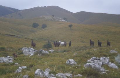 Naoružani vrećama krenusmo u subotu ujutro praćeni oblacima, vjernim pratiteljima, do Podkilavca, sela iz kojega krećemo prema domu na Hahlićima. Kišica kapa u malim sitnim kapljicama kao da se smilovala kad nas je vidjela kako teglimo ruksake omotane u raznobojne vrećice…kapa toliko da nam hladi obraze, zahuktale od uspona. Kad sam nakon sat vremena uspona počela razmišljati pa što mi je sve to trebalo: kiša, oblaci, magla u daljini… stvorila se slika koja mi je razgalila dušu i izazvala strahopoštovanje: zlatnozeleni pašnjaci na kojima pasu divlji konji, vranci, bjelci, riđani.
