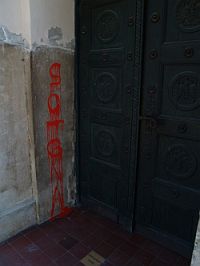 Nagrđena križevačka konkatedrala. Već desetak dana na samom ulazu u crkvu sv. Križa, spomenik kulture iz 13. stoljeća, stoji provokativan i uvredljiv natpis. Župnik će ga dati ukloniti o svom trošku