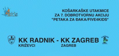 Nakon koncertnog spektakla Tamburaškog orkestra HRT-a i Đanija Stipaničeva, koji je 1.12. ispunio sportsku dvoranu u Križevcima, 7. dobrotvorna akcija “Petaka za đaka/FIVE4KIDS” križevačke udruge P.O.I.N.T. nastavlja se velikim sportskim utakmicama između košarkaških klubova “Radnik” Križevci i “Zagreb”, koji će se odigrati u nedjelju 19. prosinca 2010. s početkom u 16 sati. Susret mlađih kadeta (M-14) bit će odigran prvi, od 18 sati i susret juniora (M-18), a podrškom sponzora Hrvatskog košarkaškog saveza bit će i nagradnih igri za gledatelje. Sve selekcije KK “Zagreb” redovito su među četiri najbolja hrvatska kluba, taj je prvoligaš u samom vrhu hrvatske košarke, a u ovoj akciji sudjeluje već drugu godinu zaredom. Suorganizatori ovog događaja su KK Radnik i Zajednica športskih udruga Križevci, uz nezaobilaznu podršku OŠ Ljudevita Modeca.