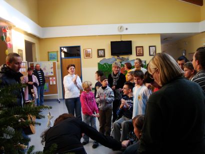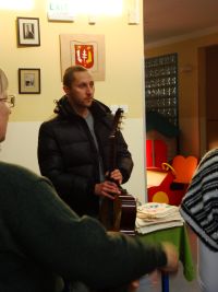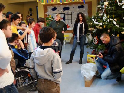 Budući da su se učenici i nastavnice pod odmorom okupili u auli Centra, spontano su zapjevali “Kad si sretan”, a Mandić, inače gitarist u glazbenom sastavu Luke Belanija, s kojim je prije sedam godina i osmislio Glazbeni-forum.com, odmah je isprobao gitaru. Darovani učenici s ravnateljicom Centra prof. Majom Prodan uzvratili su darivanje suvenirima iz njihove kreativne radionice – božićnim ukrasima i svijećama.