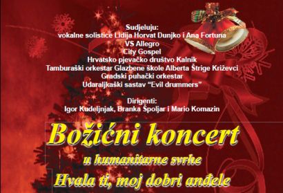 Ovogodišnji božićni koncert pod pokroviteljstvom Grada Križevaca održat će se u utorak 21. prosinca 2010. u sportskoj dvorani OŠ Ljudevita Modeca s početkom u 19:30 sati, objavljeno u četvrtak iz križevačke gradske uprave. Koncert je ove godine humanitarnog karaktera pa, iako je naslovljen “Hvala ti moj dobri anđele”, što je službeno ime akcije koju na nacionalnoj razini provodi Hrvatski savez udruga tjelesnih invalida, ovdje se ne radi o pomaganju osoba s invaliditetom već o prikupljanju dobrovoljnih priloga namijenjenih potrebama djece bez odgovarajuće roditeljske skrbi, djece s područja Grada te općina Gornje Rijeke, Sv. Ivana Žabna i Sv. Petra Orehovca, smještenoj u udomiteljskim obiteljima te ustanovama za nezbrinutu djecu.