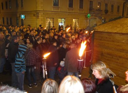 Žive jaslice u ovakvom izdanju zamisao su likovnih aktivista, prije svega Grozdane Pavičić (Bobe Csik) i Zdenka Baloga, koji su sugrađanima – vjernicima i svim ljudima dobre volje – nastojali pružiti radost Božića u što realističnijem ozračju. Za razliku od prošle godine, kad su to izveli prvi put, ovog Badnjaka likovnjacima su se pridružili i članovi mješovitog zbora Hrvatskog pjevačkog društva “Kalnik”, koji su izvedbama božićnih napjeva dali primjerenu zvučnu kulisu, a držeći baklje zajedno s članovima DVD-a Križevci mnoge su posjetitelje i zagrijali. Više desetaka Križevčana koji su se prije mise našli pred crkvom pozdravilo je zalaganje kulturnjaka, ocijenivši da to treba postati tradicijom.(VL)