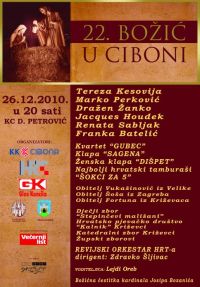 Tako na 22. “Božiću u Ciboni” nastupaju Katedralni pjevački zbor Križevci, Hrvatsko pjevačko društvo “Kalnik” Križevci i obitelj Fortuna.
