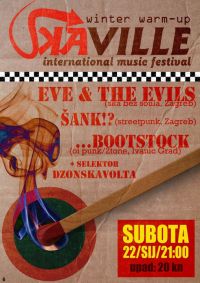 Prije svega, domaće, zagrebačke snage “Eve & The Evils” koje nose dašak svježine svojim soul-ska pjesmama na našoj combat sceni. Ali, da bi svi pravi ratnici bili zadovoljeni, tu je i nova street-punk atrakcija “Šank!?” koja svojim prvim albumom lomi sve pred sobom, tako da je ovo idealna prilika za promociju. Tu su još i “Bootstock”, ivanićgradska ekipa koji osim što vole oi, imaju finog takta i za 2tone traditional uspješnice, pa ćete tako moći čuti i neke kultne obrade.