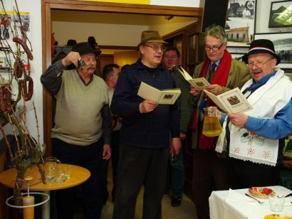 Kao domaćica i predsjednica Društva, nazočne je pozdravila Branka Gold, a posebno delegaciju vinogradara i vinara “Bilikum” iz Križevaca, na čelu s predsjednikom Josipom Trbusom. Zatim je zamolila društvo da prema regulama Križevačkih štatuta izabere peharnika, zvonara/mežnara i popevače, a tamburaše je predvodio Josip Šatrak sa svojim sastavom.