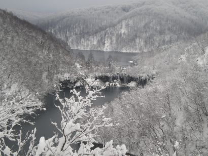 Nisam trebala ni otvoriti stranicu jer sam znala… naručila sam snijeg odavno. I ne malo snijega, jer kod nas podno Kalnika snježno vrijeme računa se samo iznad 40tak cm. Isti taj naručeni snijeg prvi nas je pozdravio kad smo krenuli u šetnju jezerima, tj. onim dijelom jezera koji je bio prohodan. Grane drveća jedva su ga držale, objesile su se pod njegovom težinom pletući cijelom stazom slavoluke želeći nas pozdraviti što smo bili hrabri i upustili se u avanturu snježnih Plitvica. Isti taj snijeg je svakim našim korakom škripao ispod nogu, a nogu je bilo puno i kao da je svakog od nas 77 koliko nas je koračalo snježnom stazom htio posebno pozdraviti i reći: “Pao sam samo za Vas! Vidite i čujte koliko sam svjež, da škripim. Pogledajte Veliki slap! I on danas jače šumi da ga možete čuti s vidikovca, kad je već put prema njemu zameten.“ Bila sam cijelo vrijeme sretna, jer sam po škripi čula iza sebe zadovoljne korake planinara. Po škripi snijega sam znala da se neće izgubiti i da me vjerno prate, baš kako dolikuje pravim planinarima. Mnogima je bilo žao, a i meni samoj što više staza nije bilo pročišćeno, no i snijeg zna da se od previše ljepote odjednom može oslijepiti… Tako da je u svojim zametenim stazama i jezerima sakrio poruku: „Dođite mi opet dogodine. Uživao sam u vašim mnogobrojnim tragovima koje ste ostavili iza sebe.“