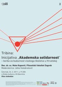Prva vruća tribina ovogodišnjeg Culture Shock Festivala dovodi u Križevce doc.dr.sc. Mate Kapovića sa zagrebačkog Filozofskog fakulteta – jednog od pokretača inicijative “Akademska solidarnost”, nastale u listopadu 2010. kao odgovor akademske i znanstvene zajednice na nacrte prijedloga Zakona o sveučilištu, Zakona o znanosti i Zakona o visokom obrazovanju.