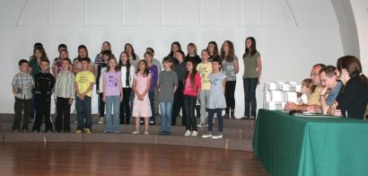 DOBRA DJELA Križevački učenici prodavali svoje slike. Učenici četvrtoga razreda OŠ Ljudevita Modeca dali su 54 svoja likovna rada, koja su na dražbi postigla cijenu i 700 kuna