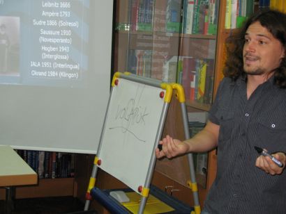 S 13 novih polaznika krenula je prošli ponedjeljak druga po redu, svakodnevna besplatna radionica esperanta u Gradskoj knjižnici “Franjo Marković” Križevci. Voditelj radionice je mladi profesor anglistike i germanistike Kruno Puškar, član Studentskog esperantskog kluba i potpredsjednik Hrvatske esperantske mladeži. Nakon dva tjedna svladavanja lingvističkih osnova sudionici će pisati provjeru znanja i dobiti diplome, a mogu se i dodatno educirati o ovom međunarodnom umjetnom jeziku.