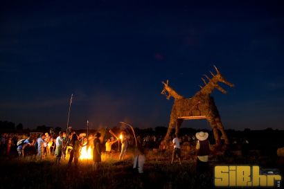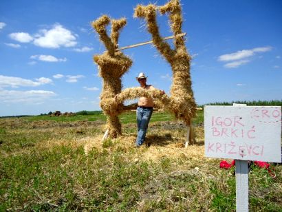 Simboličnim spaljivanjem dvoglavog zmaja na polju u blizini baranjskog sela Luga prošli je vikend završio šesti “Land Art festival” u organizaciji umjetničke udruge “Slama”. Na ovogodišnjoj kiparskoj koloniji sudjelovalo je 27 umjetnika iz cijelog svijeta, čije su slamnate skulpture, načinjene od četiri tisuće bala sijena, privukle mnoštvo oduševljenih posjetitelja. Motivi, poput bicikla, novozelandskog kivija ili cirkusanata, samo su neki od skulptura koje su dočarale temu ovogodišnjeg festivala: