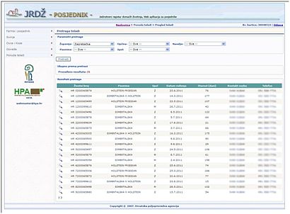 Pretraga je moguće prema županiji, općini i mjestu, te pasmini i spolu teleta, a rezultati pretrage tablično prikazuju popis teladi te ukupan broj grla. Za odabrano tele mogu se vidjeti sljedeći podaci: životni broj, spol, pasmina, datum rođenja i posjednik, te podaci o posjedniku i njegovim ostalim ponudama.