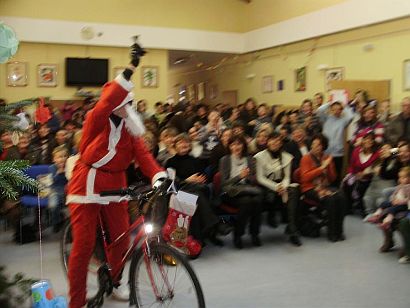 Nakon izvrsne priredbe djeca su s nestrpljenjem iščekivala najavljene darove, kada se oglasilo neobično zvono, zvono bicikla na kojem je stigao spretni Djed Božićnjak glavom i bradom, što je izazvalo burne uzvike oduševljenja svih gostiju i djelatnika Centra, a posebno djece. Kao zahvalu za ovogodišnje darivanje ravnateljica Prodan je uručila zahvalnicu udruzi P.O.I.N.T.