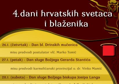KRIŽEVCI – U Križevcima će se od 26. siječnja do nedjelje održati 4. Dani hrvatskih svetaca i blaženika. Ove će godine četverodenvnim programom i euharsitijskim slavljima biti obuhvaćeni hrvatski blaženici i sveti Marko Križevčanin, najavio je župnik križevačke župe Svete Ane, Stjepan Soviček.