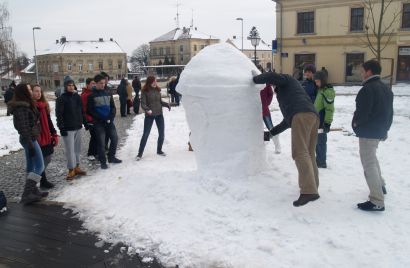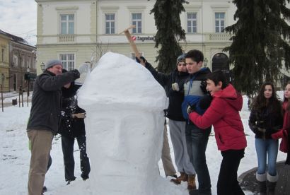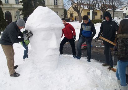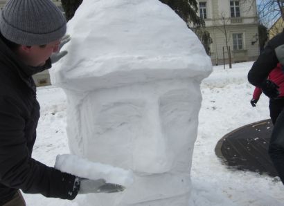 Križevački kipar Igor Brkić, poznat po jedinstvenom oblikovanju neobičnih skulptura od drveta, izveo je novu “ludoriju”. Na Trgu Antuna Nemčića s učenicima OŠ Vladimir Nazor postavio je golemu bistu križevačkog izumitelja Marcela Kiepacha. Materijala za kip imali su ovih dana u izobilju, jer izgradili su ga od snijega.