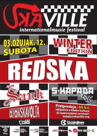 8. Culture Shock Festival za subotu 3. ožujka 2012. ponosno najavljuje treće zimsko izdanje Skaville Festivala, koje se održava s promocijama triju albuma. Talijanski ska/punk/core bend Redska predstavlja “La Rivolta”, inspiriran današnjicom i tekstovima prožetim socijalnim i političkim borbama sa strogim stavovima protiv fašizma, rasizma, seksizma i kapitalizma koji, osim što isušuje talijansko društvo, razara i cijelu Europu. Zagrebački punk rock/oi bend Šank promovira “Priče noćnih tramvaja”, a Slavonci S-Kapada donose “Balkan-C”. Za kraj ostaje selektor DžonSkaVolta sa ska, reggae i rocksteady set-listom. Koncert počinje u 19:30 sati, a ograničen broj ulaznica po cijeni 40 kuna može se nabaviti u Art Rock Caffeu i Klubu kulture u Križevcima.