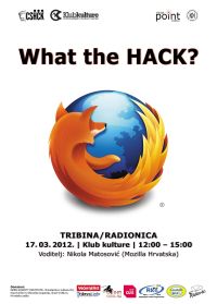 8. Culture Shock Festival sa zadovoljstvom poziva u subotu 17. ožujka 2012. u križevački Klub kulture na tribinu s radionicom “What the HACK!”. Predavač i voditelj je Nikola Matosović iz zajednice korisnika Mozilla Hrvatska, koji će dati odgovore na pitanja što je uopće Mozilla, tko su Mozilliani te kako nastaje Firefox, jedan od najpopularnijih web preglednika današnjice.
