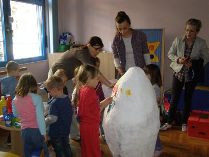 U utorak 27. ožujka djecu iz vrtića Centra su posjetila djeca novootvorenog vrtića „Čarobna šuma“. Zajedničkim snagama obojili su veliku uskrsnu pisanicu te se družili i igrali. Ovom suradnjom iskazana je želja za razvijanjem druženja i prijateljstva djece dvaju vrtića bez obzira na međusobne različitosti.