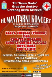 Tamburaški Sastav Nova Nada i Gradsko društvo Crvenog križa Križevci pozivaju u nedjelju 13. svibnja 2012. od 19 sati u Veliku dvoranu Hrvatskog doma u Križevcima na humanitarni koncert za pomoć obitelji Denisa Salkića iz Donje Glogovnice, dječaka oboljelog od leukemije. Nastupit će klapa “Zrinski” iz Vrbovca, Mirko Švenda Žiga, Zdravko Bugarin, Cure iz centra (C.I.C.E.), KUD Kalnik i TS Nova Nada. O akciji i prikupljanju dobrovoljnih priloga sami će tamburaši iz ‘Nove Nade’ ispričati večeras u 21 sat u eteru Radija Križevci na 96.6 MHz, u gostovanju kod Josipa Petrlića Pjera u emisiji “I ja sam tu”.