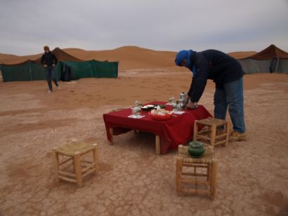 Od Jusufa smo se nakon čaja oprostili u M`hamidu-u, na samoj granici s Alžirom, gdje staje cesta. Kako smo u većim gradovima propustili otići u hammam (parnu kupelj) koji zna biti prava uživancija, a sutra smo se rastajali od Sikija i Boci, odlučili smo isprobati lokalni hammam. Što se ubrzo pokazalo kao zanimljiva ali loša ideja hahahahaha… Hammam radi u dvije smjene – za žene je otvoreno preko dana a za muške uvečer. I tako se cure spremile za spa iskustvo imajući u glavi sliku orijentalnog wellness glamura. I nestale iza brkate žene upakirane u maramu koja na ulazu u hammam prodaje ulaznice i pazi da samo žene ulaze. A kad ono, umjesto ležerno razbacanih bazenčića u jacuzzi-stilu (ja sam ponajviše kriv za tako stvorenu sliku zbog predobrih iskustava iz Sirije) dočekala ih je polumračna zaparena sobica koja zbog puno majki s malom djecom zaudara na mokraću. I jedina pipa na kojoj u slabom tankom mlazu izlazi vruća voda. Kako većina ljudi nema kupaonicu kod kuće, ovo je jedina prilika za kupaonske blagodati i ugodno ćaskanje u ženskom društvu. No naše cure su ostale tek toliko koliko je zahtijevala nužna pristojnost – da su mogle odmah bi se vratile. Na kraju kad su se opustile ispalo je ugodnije nego što se činilo na prvu loptu. Ako ćete dvije stvari zapamtiti iz ovog članka, neka druga bude ova: u hammam se ide u većim gradovima, ne moraju nužno biti namijenjeni turistima (koji su 10-20 puta skuplji od lokalnih i u koje su unisex). Ne moram ni spomenuti da smo Siki i ja privremeno preskočili epizodu s hammamom. Barem u M`hamidu.