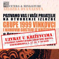 Nakon ljetnog gostovanja mladih križevačkih likovnjaka u Galeriji “Slavka Kopača” u Vinkovcima, Križevčani u subotu uzvraćaju gostoprimstvo “vinkovačkoj Grupi 1999”. U galerijskom prostoru Križevačkog likovnog kruga izlagat će umjetnici različitih stilova i generacija: Antun Babić, Dražen Bota, Suzana Bota, Želimir Fišić, Jadranka Letinić, Gordan Panić, Dubravko Sertić, Antun Smajić, Marko Šošić i Krešimir Zimonić.