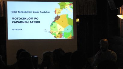 Uzduž rijeke Niger su proučavali arhitekturu od blata, dosegli su drevni Timbuktu na sjeveru Malija, istraživali su kulturu i raskošne animističke pogrebne rituale osebujnog naroda Dogon koji živi u pećinama u litici i smatra se jednim od posljednjih „starih“ naroda Zapadne Afrike, dok su u Burkini Faso praktički bježali od nereda izazvanih državnim udarom. Čitavo jednoipolsatno predavanje bilo je obogaćeno fotografijama, video-zapisima i muzikom s puta, a zainteresirana publika je i nakon predavanja postavljala pitanja i razgovarala s putnicima. Rostuhar i Tanasovski upravo se ovih dana pripremaju na novo devetomjesečno putovanje motociklom u istočnu Afriku.