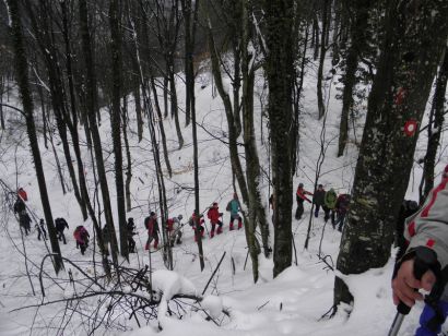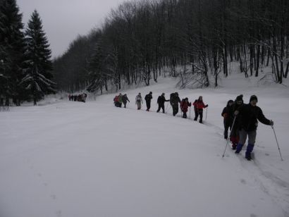 Puni novih saznanja i opskrbljeni suvenirima i prospektima, s krpljama ili gamašima na nogama i s osmjehom na licu krenusmo iz Velike za crveno bijelim oznakama put Jankovca. Naš vodič Miro je dan prije utabao stazu te nam nije bilo teško pratiti je. Svojim blago obzirnim tonom postrojio nas je jednog iza drugog: snažni momci s krpljama na početku kolone, zatim muškarci i na kraju žene i djeca. Na sreću nemoćne i bose na kraju nismo imali već „metlu“, kršnog člana HGSS-a. Prvi dio puta pozdravio nas je snješko prštić i potok Veličanka, a kako je snijeg prestao padati a nadmorska visina se proporcionalno povećavala, snijega je bilo sve više. S debljinom snijega raslo je i naše oduševljenje ljepotama pokrivenih bijelim pokrivačem. Jedino su oni na kraju kolone, djeca mala i velika smišljala načine kako da grudom iznenade svojeg predhodnika jer nas je snijeg jednostavno mamio na nestašluke.