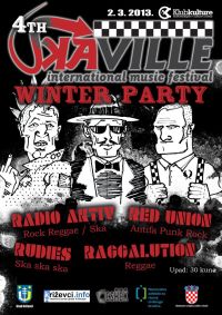 U subotu 2. ožujka u križevačkom Klubu kulture i na samom početku programa 9. Culture Shock Festivala održava se 4. Skaville Winter Edition, zimsko izdanje popularnog ljetnog festivala, koji i ovaj put donosi aktualan pregled hrvatske ska, punk i reggae scene! Ska boje će braniti Radio Aktiv (Pula/Zagreb) koji su snimili izvanredan album s nekoliko odličnih hitova (Svaku noć svaki dan, Vrtimo se). Punk rock melodije brane Red Union iz Novog Sada, a reggae ritmove će prezentirati i slovenski Raggalution, iz Kranja. Rudiesi iz Zagreba kroz cijelu noć vrte ska. Organizatori obaju festivala pozivaju vas na tradicionalnu dobru ska-zabavu! Ulaz je 30 kuna, vrata Kluba kulture se otvaraju u 21h.