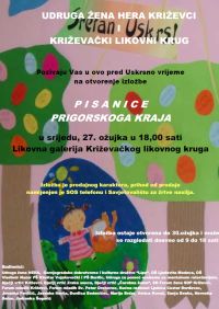 Udruga žena HERA Križevci i Križevački likovni krug poziva u srijedu 27. ožujka u 18 sati u Likovnu galeriju Križevačkog likovnog kruga na već tradicionalnu 11. izložbu “Pisanica prigorskoga kraja”.