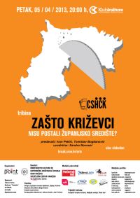 Križevci su kao grad od 12. stoljeća bili sjedište županije, ali i kulturno, gospodarsko i vojno središte. Spajanjem Križevačke i Bjelovarske županije u Bjelovarsko-križevačku postali su obično kotarsko mjesto na pruzi Koprivnica-Zagreb. Ovaj gubitak je imao više političke nego upravne razloge, a za Križevce je ostao trajan i oni više nikada nisu postali središte šire regije. O uzrocima i posljedicama ovog povijesnog događaja na ovotjednoj tribini 9. Culture Shock Festivala govorit će članovi Povijesnog društva Križevci, profesori povijesti Ivan Peklić i Tomislav Bogdanović. Uvodničar u tribinu koja se održava u petak 5. travnja 2013. i počinje u 20 sati je Sandro Novosel, a ulaz u Klub kulture je slobodan.