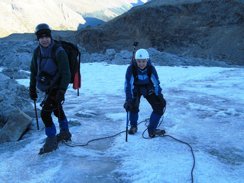 08:00 – Kak sad njega pere taj mali komadić leda na strmini. Pa nismo niti počeli po ledenjaku hodati, a već imamo problem. Kaj bude tek kasnije. Ma nije problem, idem ja napred.