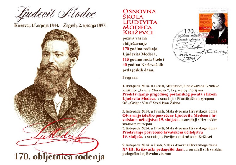Uvod u ovaj program održan je već 1. listopada u Multimedijskom kulturnom centru Gradske knjižnice “Franjo Marković” u Križevcima kojom prilikom je u čast Ljudevitu Modecu predstavljena prigodna serija od šest poštanskih kuverti i poštanski žig, koje su osmislili filatelisti iz Osnovne škole “Grigor Vitez” iz Svetoga Ivana Žabna, pod vodstvom Zorana Cvetkovića.