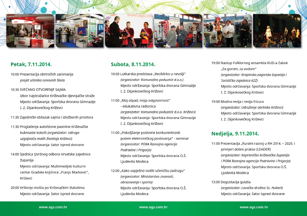 U organizaciji Koprivničko – križevačke županije u Križevcima od 7. do 9. studenoga 2014. godine održati će se 17. Obrtnički i gospodarski sajam u sportskim dvoranama Osnovne škole „Ljudevit Modec“ i Gimnazije Ivana Zakmardije Dijankovečkog. Na Sajmu će nastupiti 255 izlagača iz Republike Hrvatske, Bosne i Hercegovine, Makedonije i Slovenije. Izlagači će izlagati na 3.000 m2 vanjskog i unutarnjeg izložbenog prostora (98 obrtnika, 106 tvrtki, 25 OPG-a i 26 institucija i udruga).