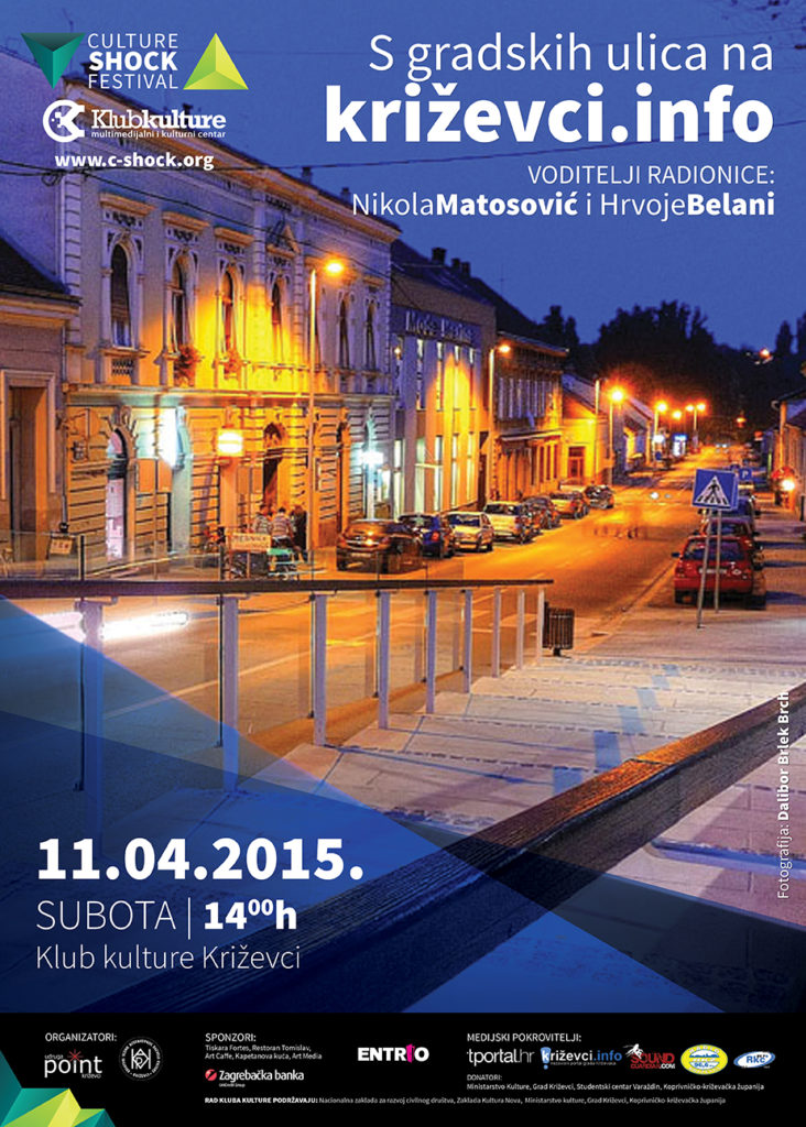 U subotu 11. travnja 2015. s početkom u 14 sati u križevačkom Klubu kulture se održava novinarska radionica za građane pod nazivom “S gradskih ulica na Križevci.info”. Primjećujete pozitivne, ali i one negativne, stvari i pojave u vašem svakodnevnom okruženju? Želite o tome informirati lokalnu zajednicu? Imate laptop, tablet ili pametni telefon? Savladajte na ovoj radionici nekoliko koraka do vlastitih objava na nezavisnom portalu Križevci.info. Voditelji radionice su urednici portala Nikola Matosović i Hrvoje Belani.