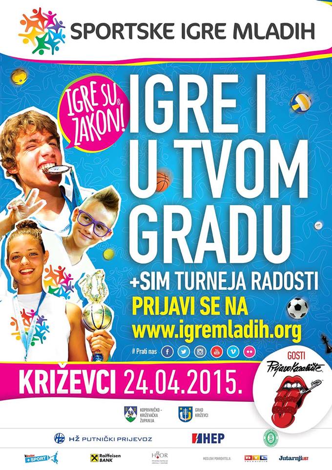 U petak 24. travnja 2015. s početkom u 13:30 sati, na Strossmayerovom trgu u Križevcima će se održati svečanost otvaranja Sportskih igara mladih za 2015. godinu, koje se održavaju po 19. puta. Uz brojnu djecu, natjecatelje Sportskih igara mladih otvaranju će nazočiti i predsjednica Republike Hrvatske Kolinda Grabar Kitarović te predstavnici državne i lokalne vlasti kao i sponzori i prijatelji igara. Ove jedinstvene igre jedna su od najmasovnijih sportskih manifestacija u ovom dijelu Europe koja pruža priliku djeci osnovnih i srednjih škola da od travnja do kolovoza sudjeluju u vrhunsko organiziranim natjecanjima u 10 sportova (mali nogomet, ulična košarka, rukomet, odbojka, tenis, stolni tenis, odbojka na pijesku, šah, graničar i atletika).