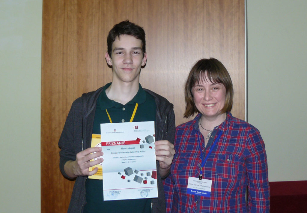 Državno Natjecanje iz engleskog jezika održano je od 21. do 23. travnja 2015. u Šibeniku. Gimnaziju Ivana Zakmardija Dijankovečkoga Križevci na natjecanju je zastupao Neven Jakopčić učenik 2.d razreda u pratnji svoje mentorice profesorice Irene Ines Orak.