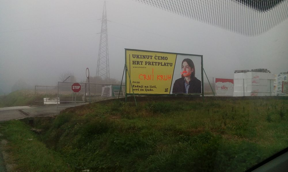 Također, opcija HDZHSSSDP si dopušta vandalizam, uništavajući naš jedini billboard u gradu. Zanimljivo, to je trenutno jedini zašarani plakat u gradu.