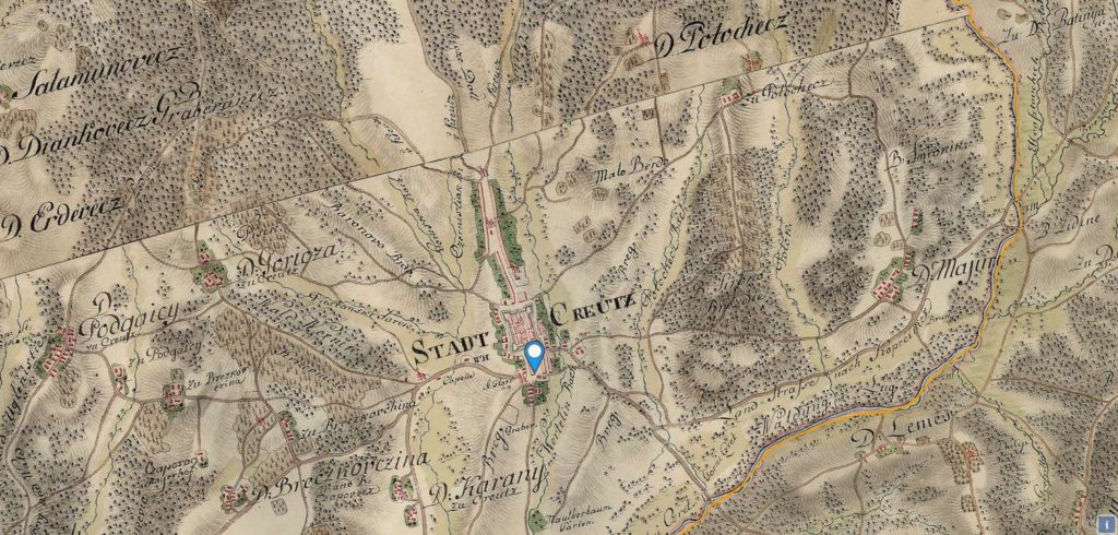 Habsburgovci su između 1763. i 1787. godine provodili prvo vojno mapiranje svog carstva. U njega je uključen i veći dio Hrvatske, izuzev Dalmacije južno od Nina te dijela Istre i Primorja. Karte su vrlo detaljne. Tako ćemo, ako pogledamo Križevce, uočiti mnoge i danas poznate nazive – Potočec, Karane, Majurec, Prikraj, itd.